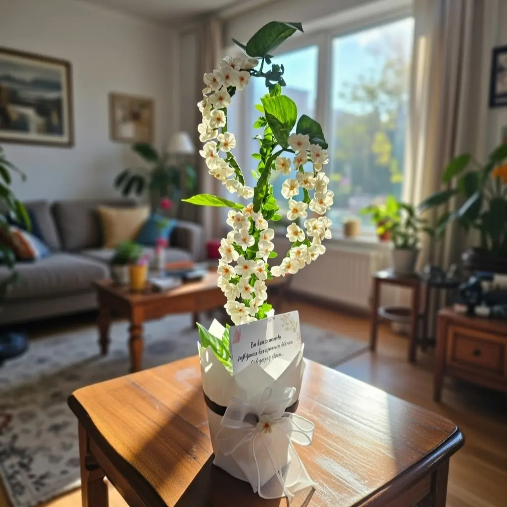 Yeni bir işe başlamak, terfi almak veya yeni bir eve taşınmak hayatımızdaki en temiz sayfalardır. Beyaz renk tarih boyunca bu temiz başlangıçları ve saf niyeti temsil etmiştir. Biz Yıldız Buket atölyemizde bu güzel duyguyu somutlaştırmak istedik. Masalarınıza her mevsim baharı getirecek olan spiral beyaz çiçek tasarımını hazırladık. Bu ürün, piyasada gördüğünüz sıradan saksı çiçeklerinden çok farklıdır. Heykelsi formuyla girdiği ortamda hemen dikkat çeker. Üstelik asla solmaz. Bakım gerektirmeden yıllarca ilk günkü o taze enerjisini korur.